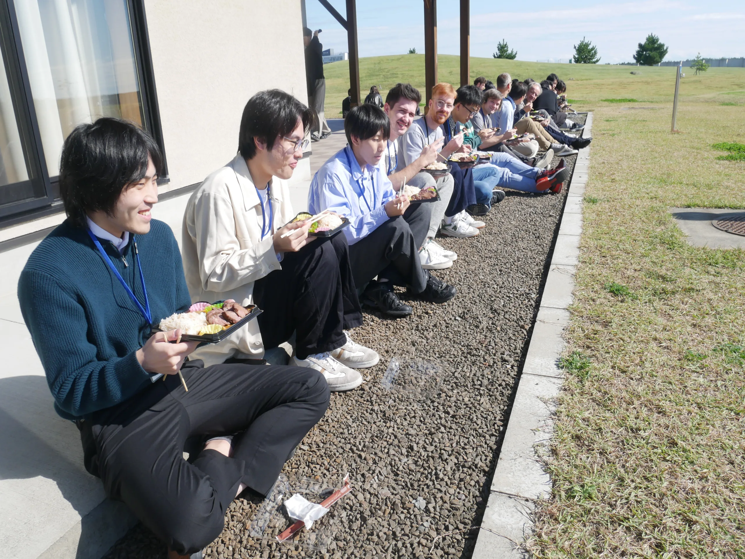 天気が良かったので、仙台名物牛タンの合い盛り弁当を外でいただきました。