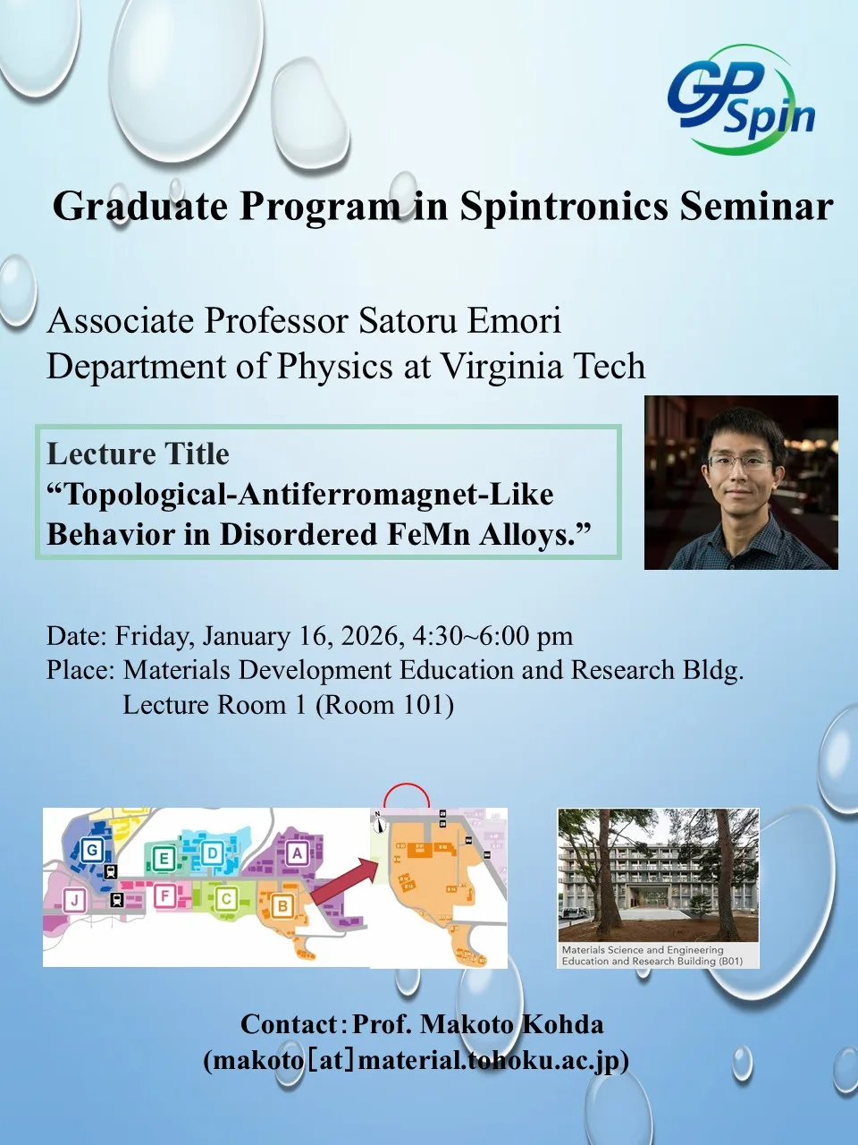 Graduate Program in Spintronics Seminar 開催のお知らせ(開催日2026年1月16日(金))