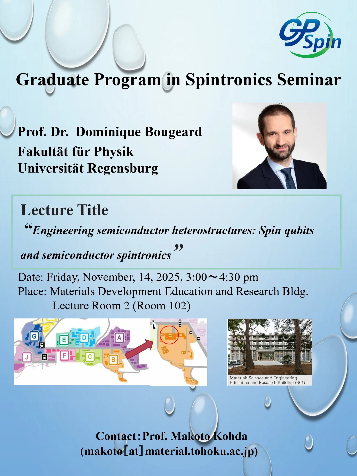 講演タイトル:“Engineering semiconductor heterostructures: Spin qubits and semiconductor spintronics“